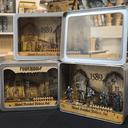 Each diorama is carefully handcrafted from balsa wood, cut, assembled, and painted by hand, recreating the universe of the game and giving the figures their perfect atmosphere. Powerwolf, Blind Guardian, Rhapsody of Fire (coming soon)… come to life in this unique Deluxe collection, in a premium metal box.